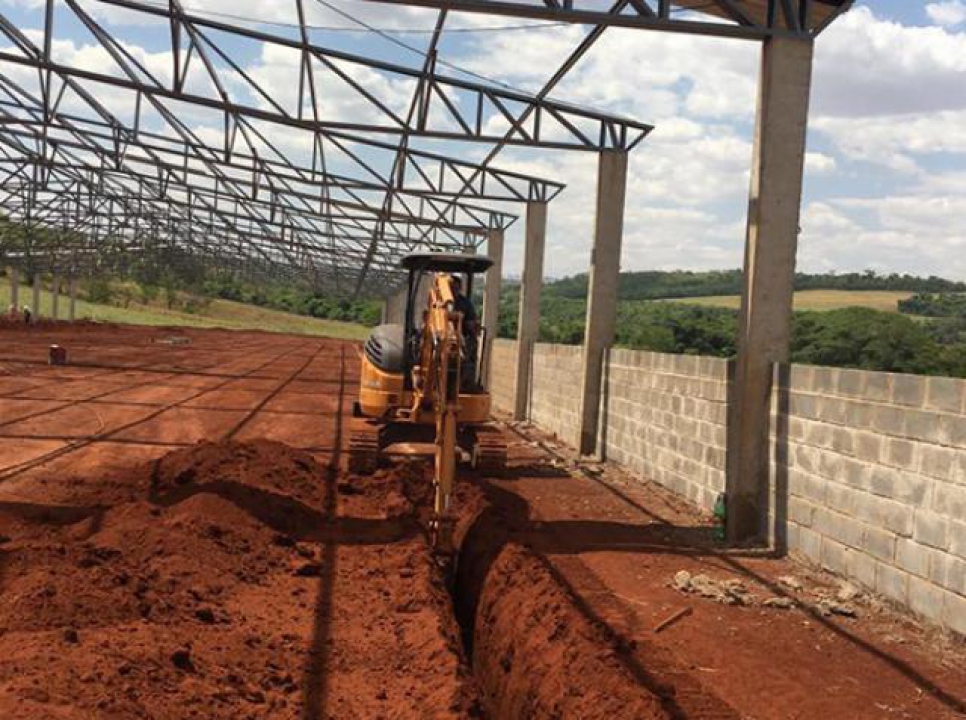 A construção do Compost Barn e do túnel de vento da Nova Terra já está em andamento! Com capacidade para alojar 280 vacas, o projeto é mais um passo pelo crescimento da fazenda em prol da pecuária leiteira do Brasil.